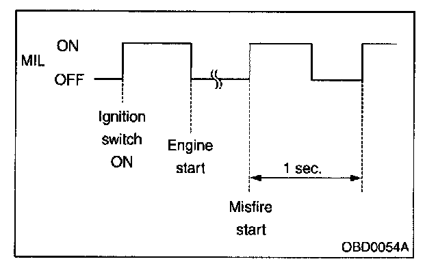 3. If the diagnosis system senses a misfire which could damage the catalyzer, the MIL will blink at a cycle of 1 Hz.