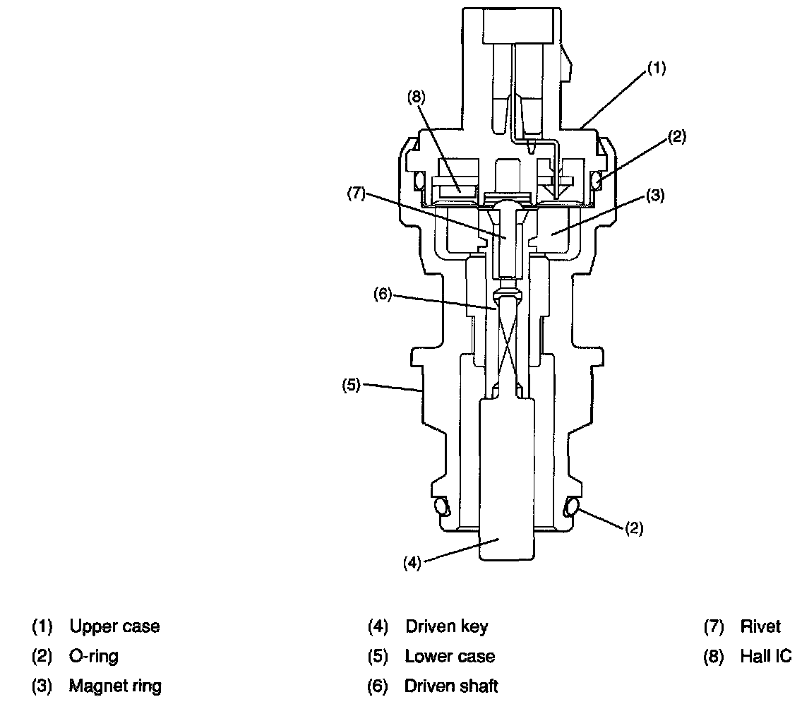 The Hall IC generates a signal that corresponds to a change in the magnetic field. One turn of the driven key in the speed sensor sends 4 pulses to the combination meter, engine control module and cruise control module.