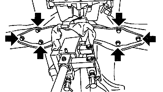 13. Remove the transmission rear crossmember bolts.