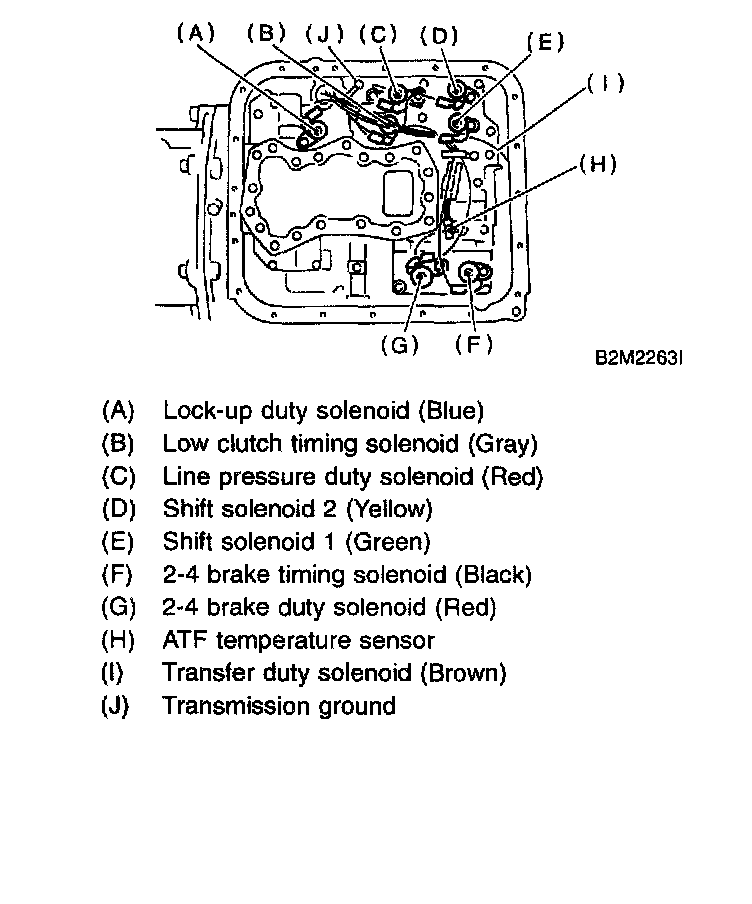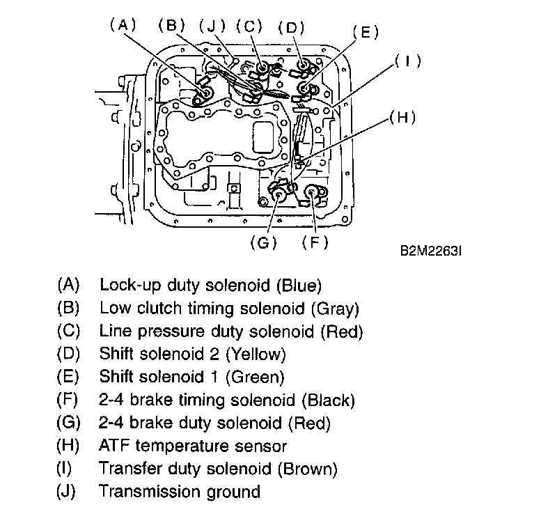 18. Disconnect duty solenoids and ATF temperature sensor connectors. Remove connectors from clip and disconnect connectors.