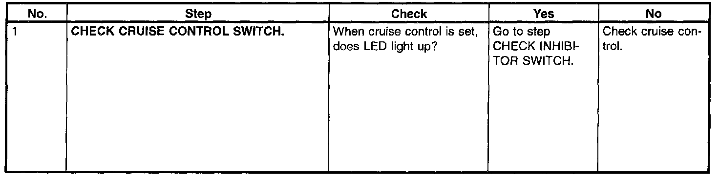 E: CHECK CRUISE CONTROL SWITCH.