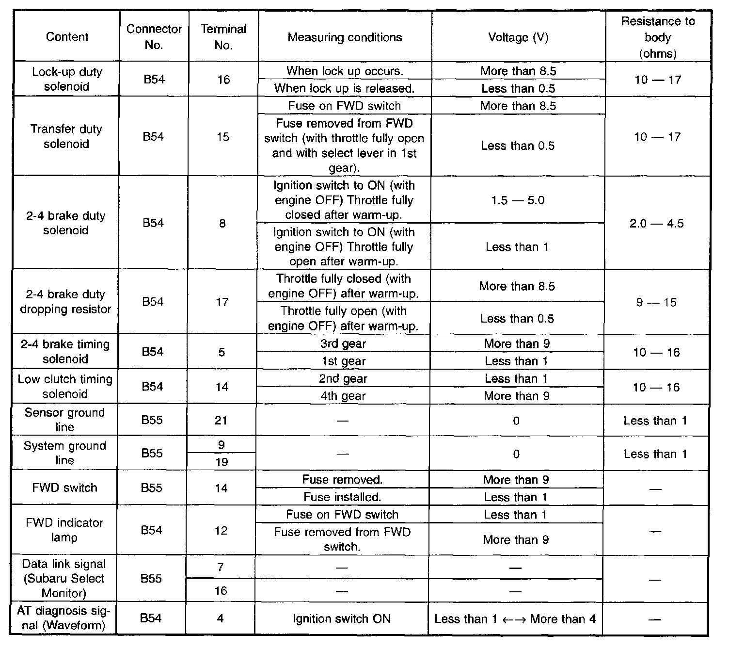 Transmission Control Module (TCM) Pinout/Terminal Values