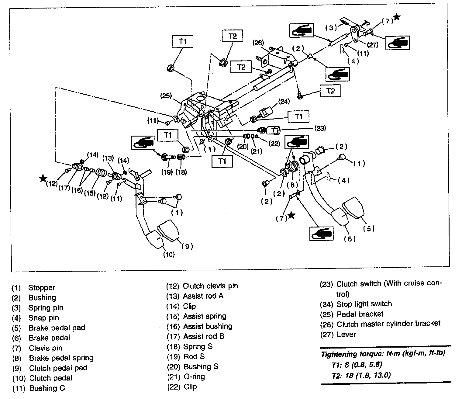 5-spd M/T, Transmission Clutch Pedal:
