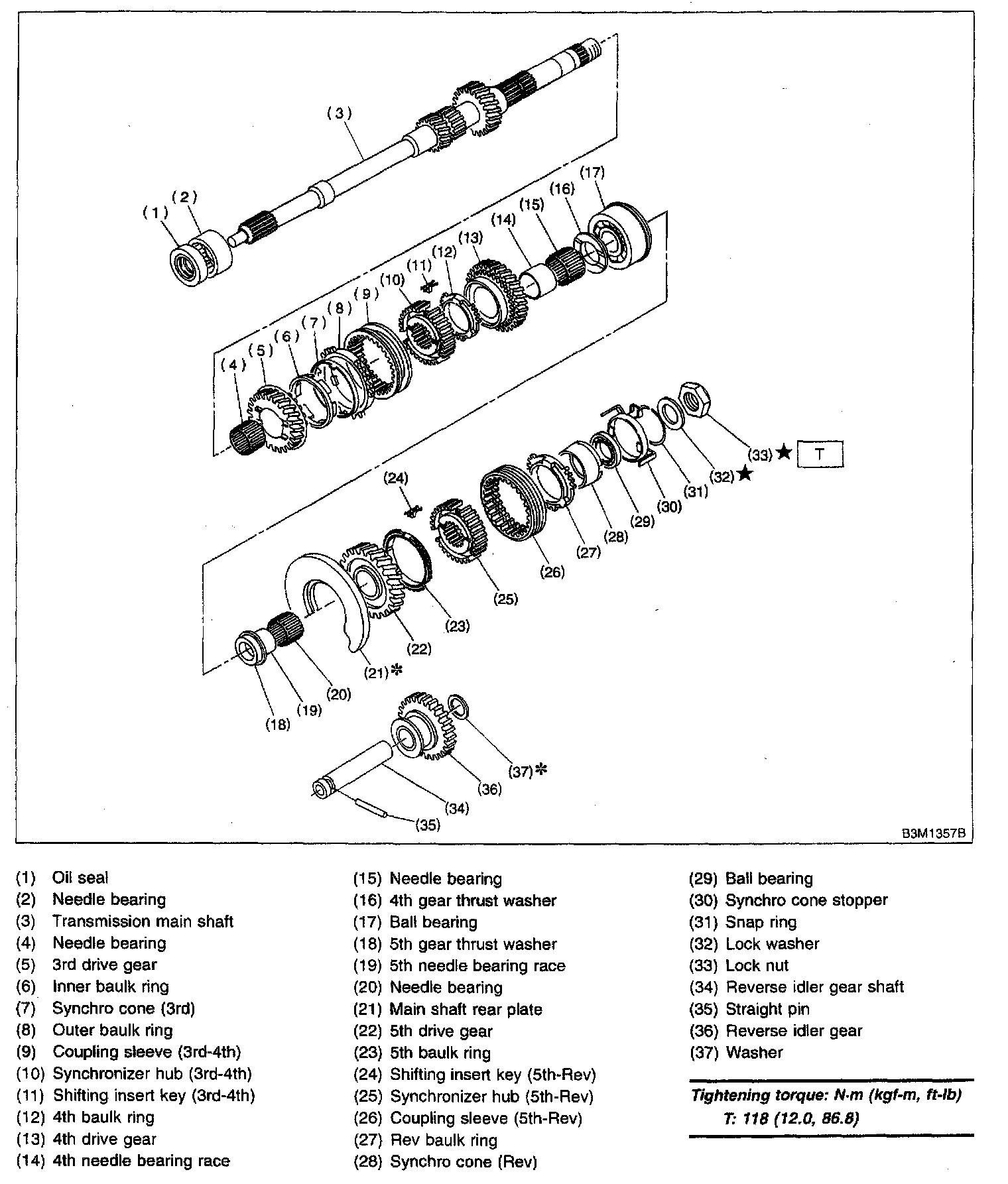 5-spd M/T, Transmission Main Shaft Assembly: