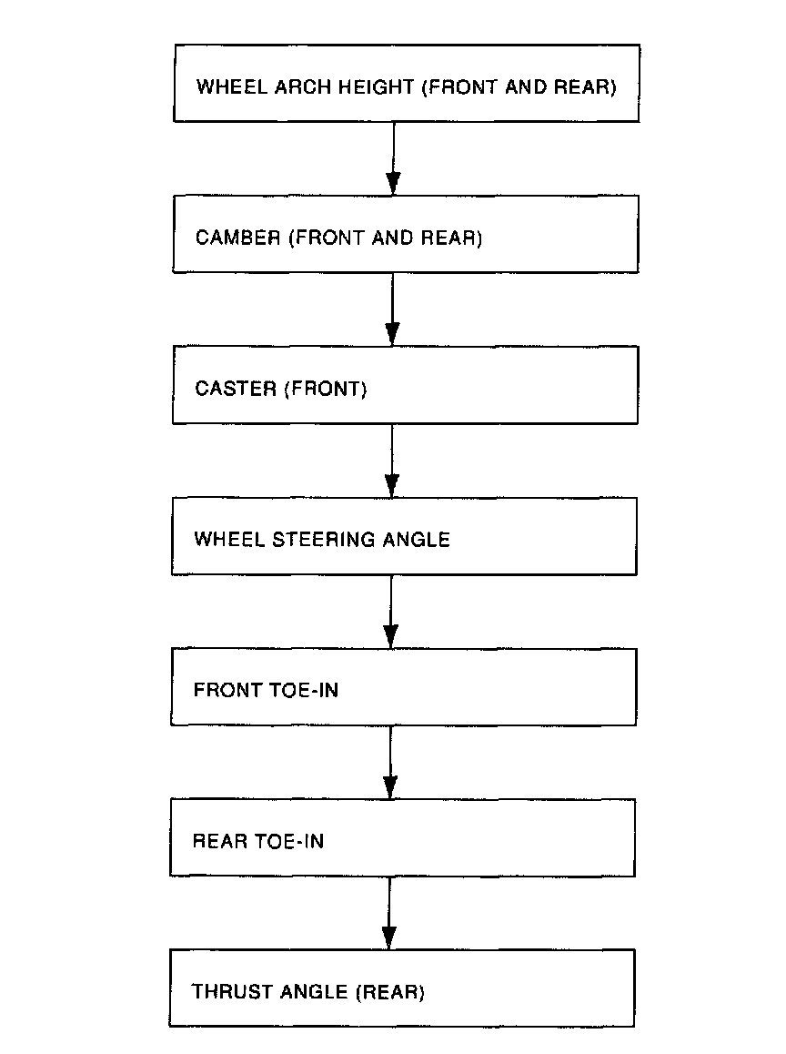 Check, adjust and/or measure wheel alignment in accordance with procedures indicated in figure.