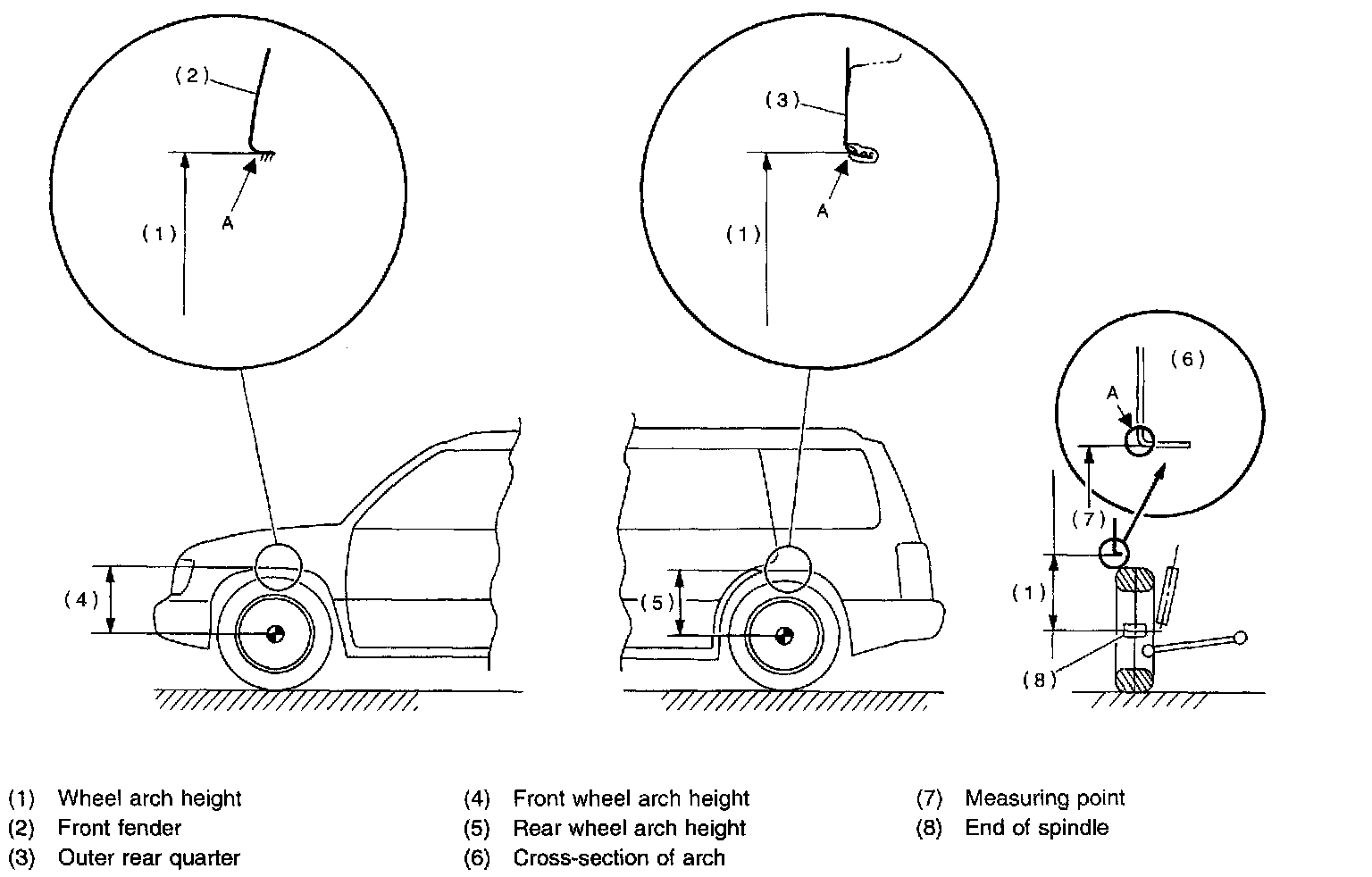 6) Measure distance between measuring point "A" and center of wheel.