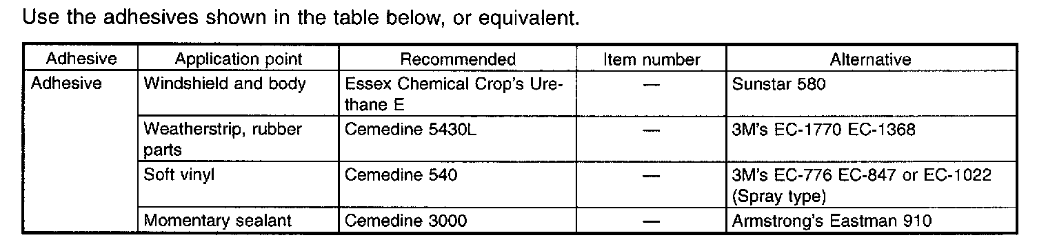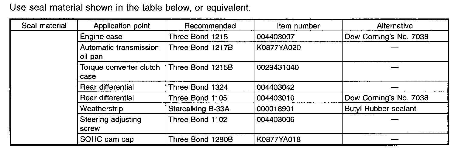 To insure the best performance, always use the specified oil, gasoline, adhesive, sealant, etc. or that of equivalent quality.