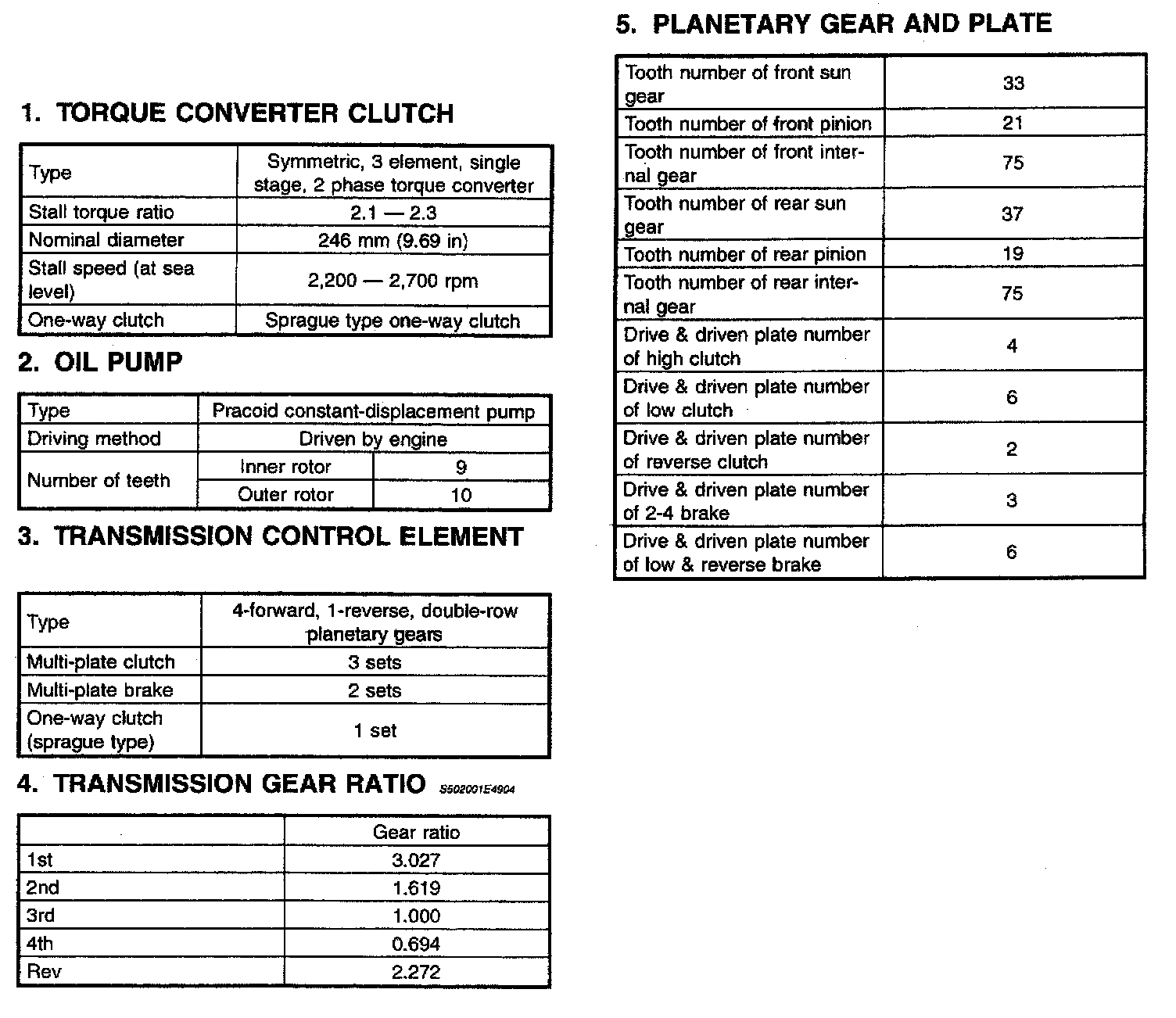 4-spd A/T, Transmission Service/Overhaul Data: