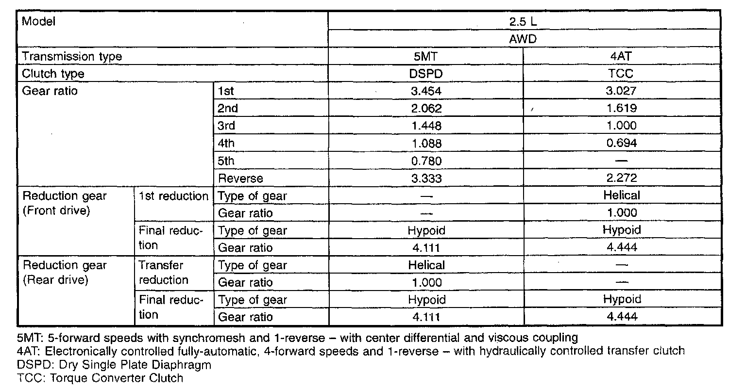 5-spd M/T/4-spd A/T, Transmission/Reduction Gear Ratios: