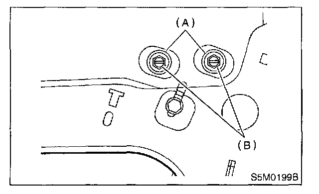 5. For adjustment of upper and lower ends of center pillar, loosen adjusting nut (A).