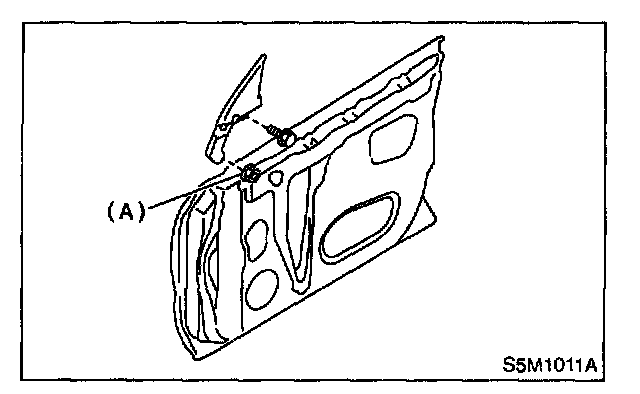 12. After adjustment of glass, if there is a gap between outer lip of gusset and glass surface, adjust the gap with adjusting bolt (A) in lower fitting part of gusset to prevent generation of wind noise.