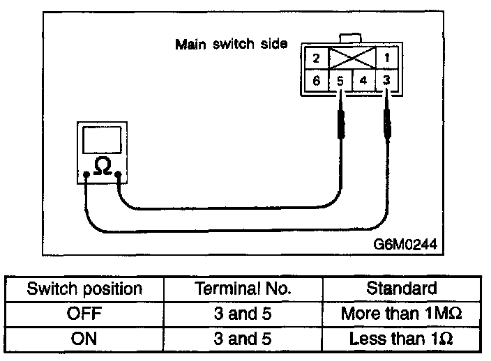 Measure the cruise control main switch resistance.