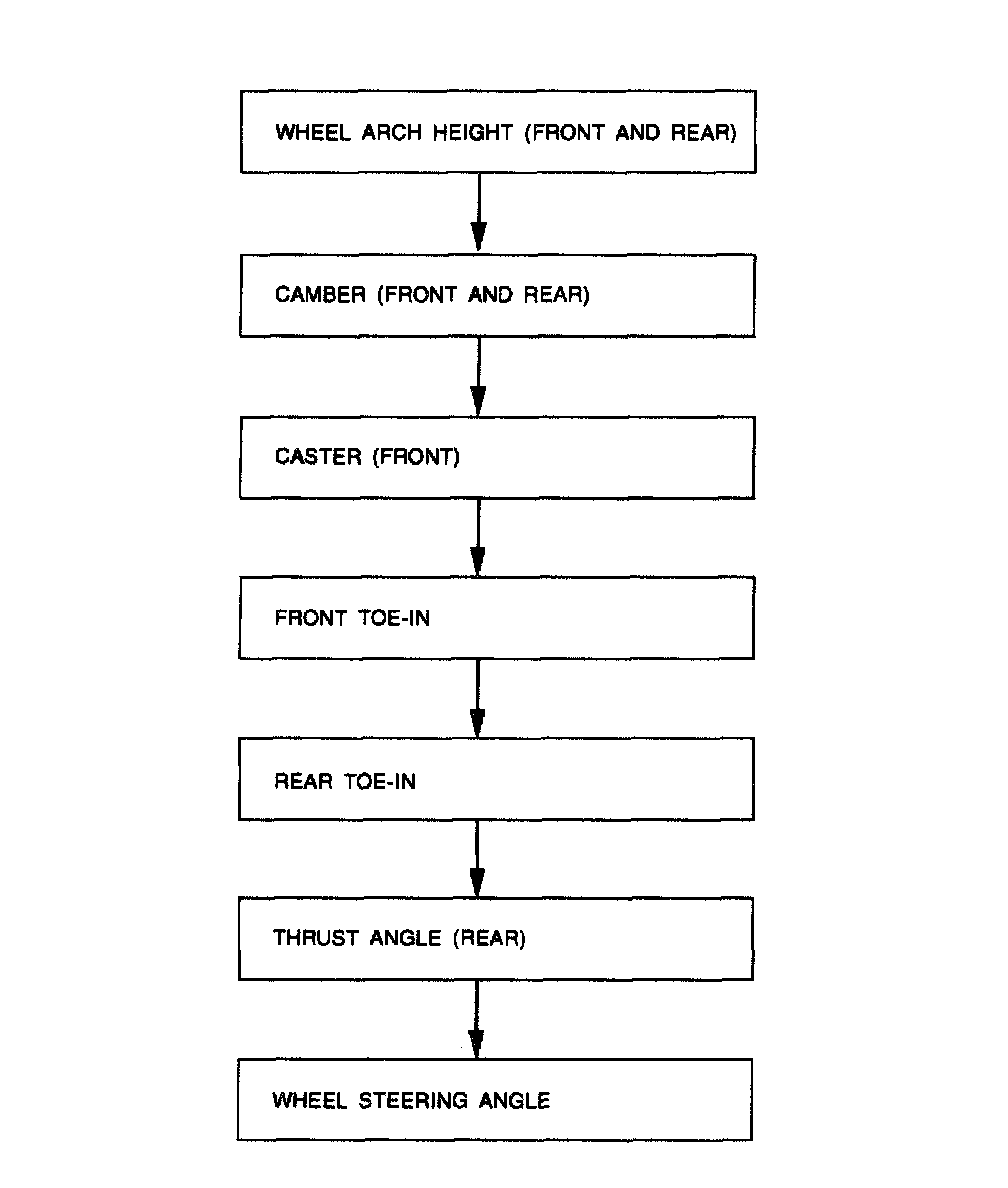 A: INSPECTIONCheck, adjust and/or measure wheel alignment in accordance with procedures indicated in figure: