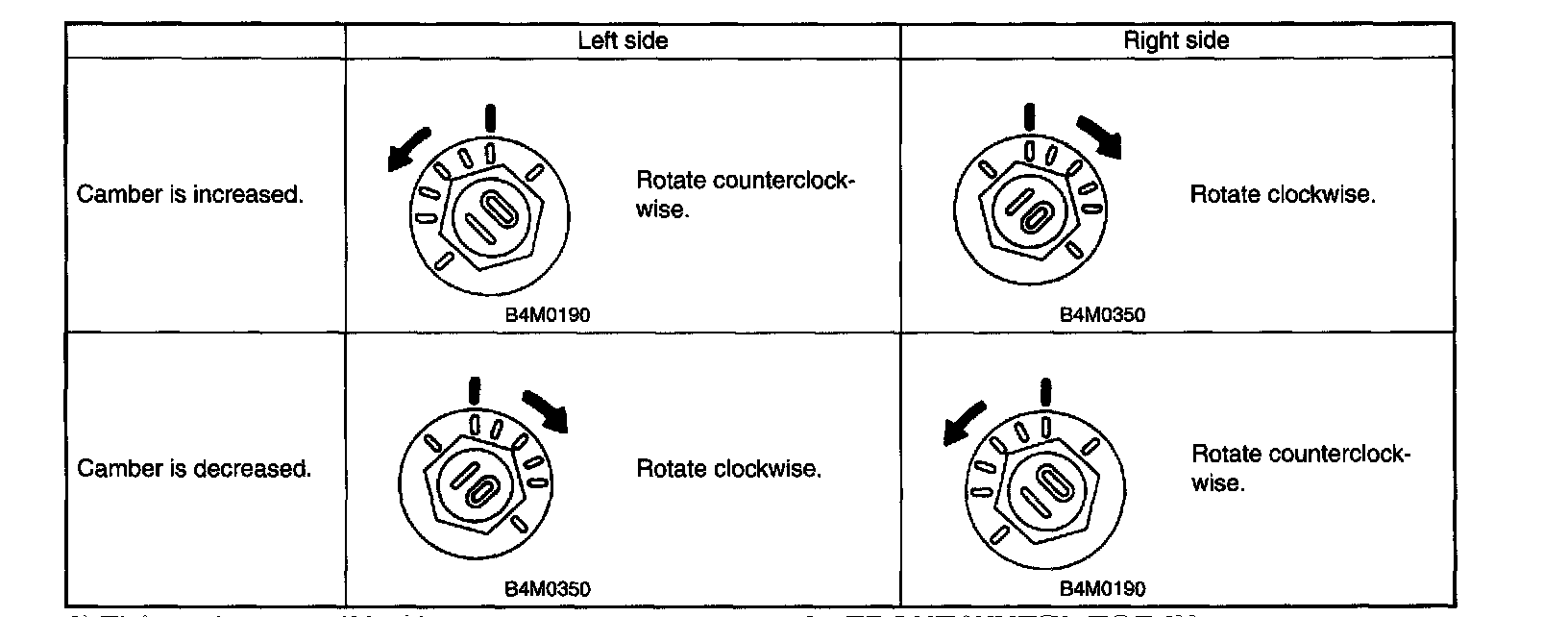 NOTE: Refer to the "SPECIFICATIONS" for the camber values.