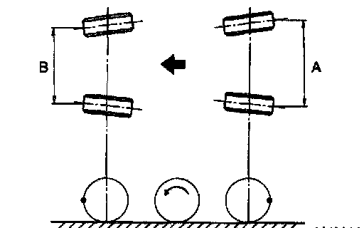 4. Measure the distance "B" between left and the right marks. Toe-in can then be obtained by the following equation: