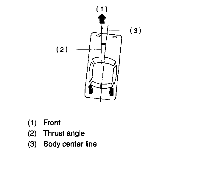 NOTE: Thrust angle refers to a mean value of left and right rear wheel toe angles in relation to the vehicle body center line. Vehicle is driven straight in the thrust angle direction while swinging in the oblique direction depending on the degree of the mean thrust angle.