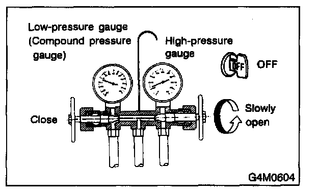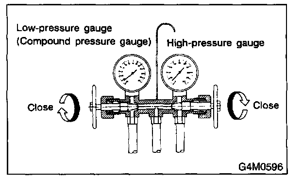 1. Close the valves on low-/high-pressure sides of the manifold gauge.