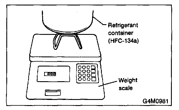11. When a 13.6 kg (30 lb) refrigerant container is used, measure the refrigerant amount in use using a weight scale.