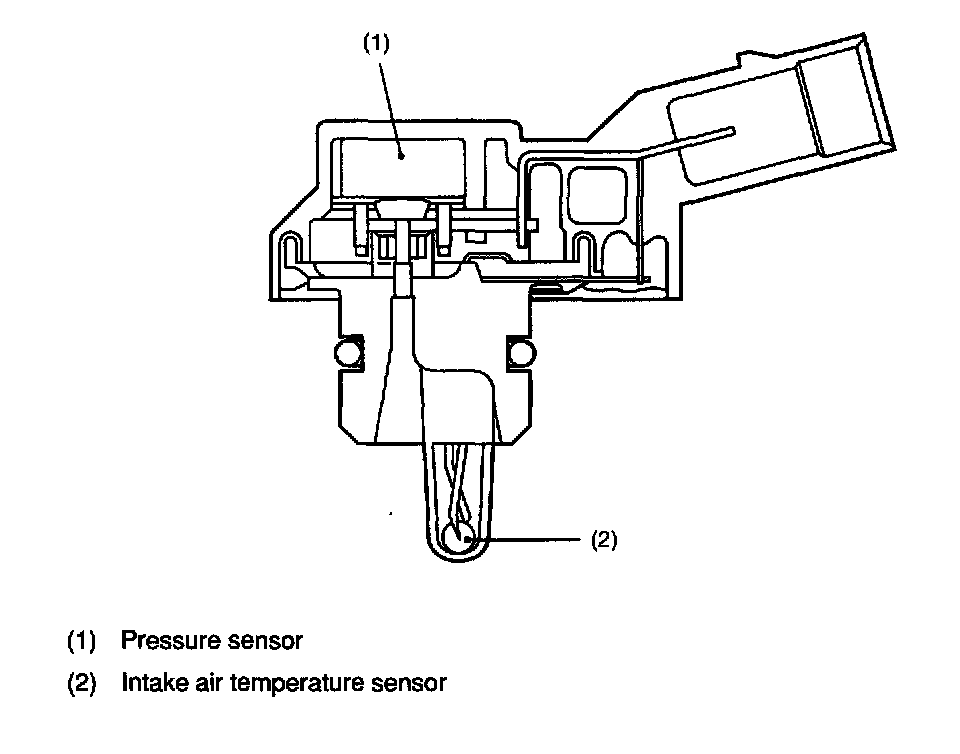 INTAKE MANIFOLD PRESSURE AND AIR TEMPERATURE SENSORSThe intake manifold pressure sensor and the intake air temperature sensor are integrated into a single unit. The unit is mounted on the intake manifold and measures the absolute air pressure in the intake manifold as well as the temperature of the intake air.