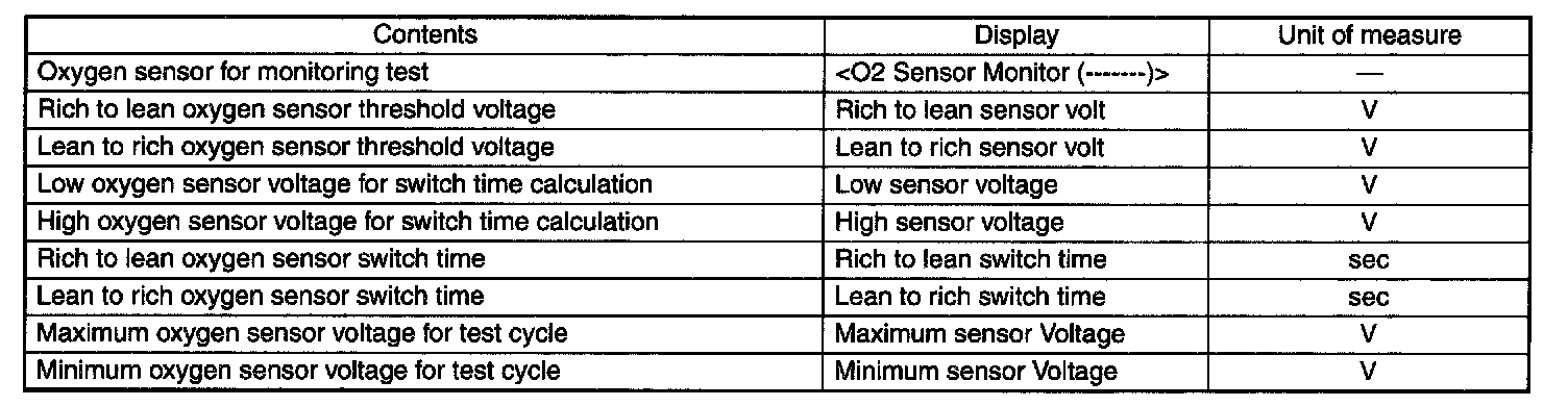 READ OXYGEN SENSOR MONITORING TEST RESULTS DATA FOR ENGINE (OBD MODE)