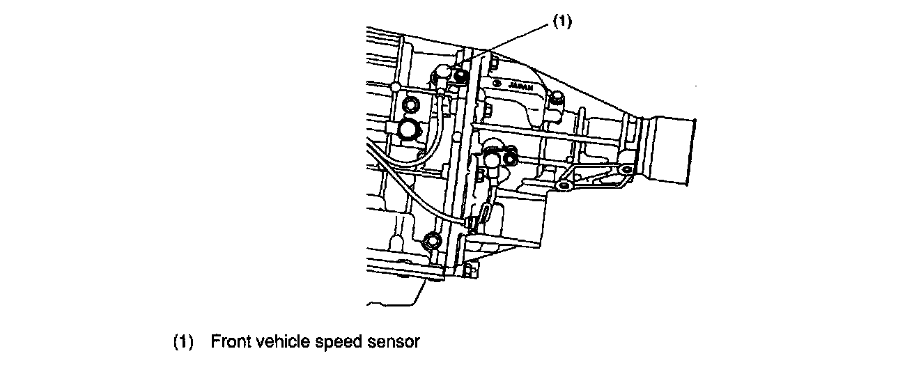 G: FRONT VEHICLE SPEED SENSORThis vehicle speed sensor (output shaft speed sensor) is externally mounted on the transmission case. It detects the front wheel speed and sends sine wave signals (16 pulses per rotation) to the TCM.