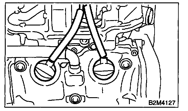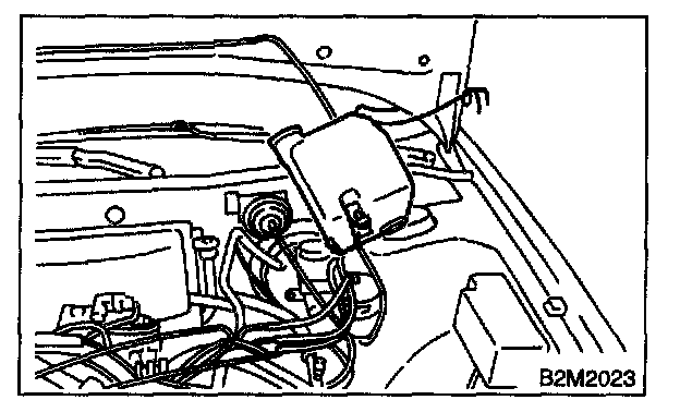 3. Disconnect the rear window glass washer hose from washer motor, then plug connection with a suitable cap.