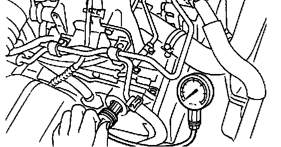 8. Crank the engine by means of the starter motor, and read the maximum value on the gauge when the pointer is steady.
