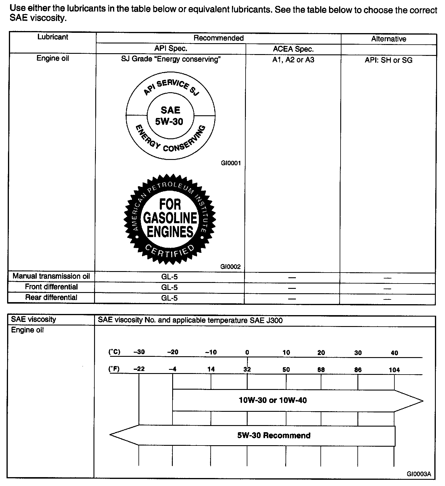 Always use a gasoline of the same or higher octane value than specified in the owner's manual. Ignoring the specifications below will result in damage or poor operation of the engine and fuel injection system. Use the specified gasoline to correct performance.