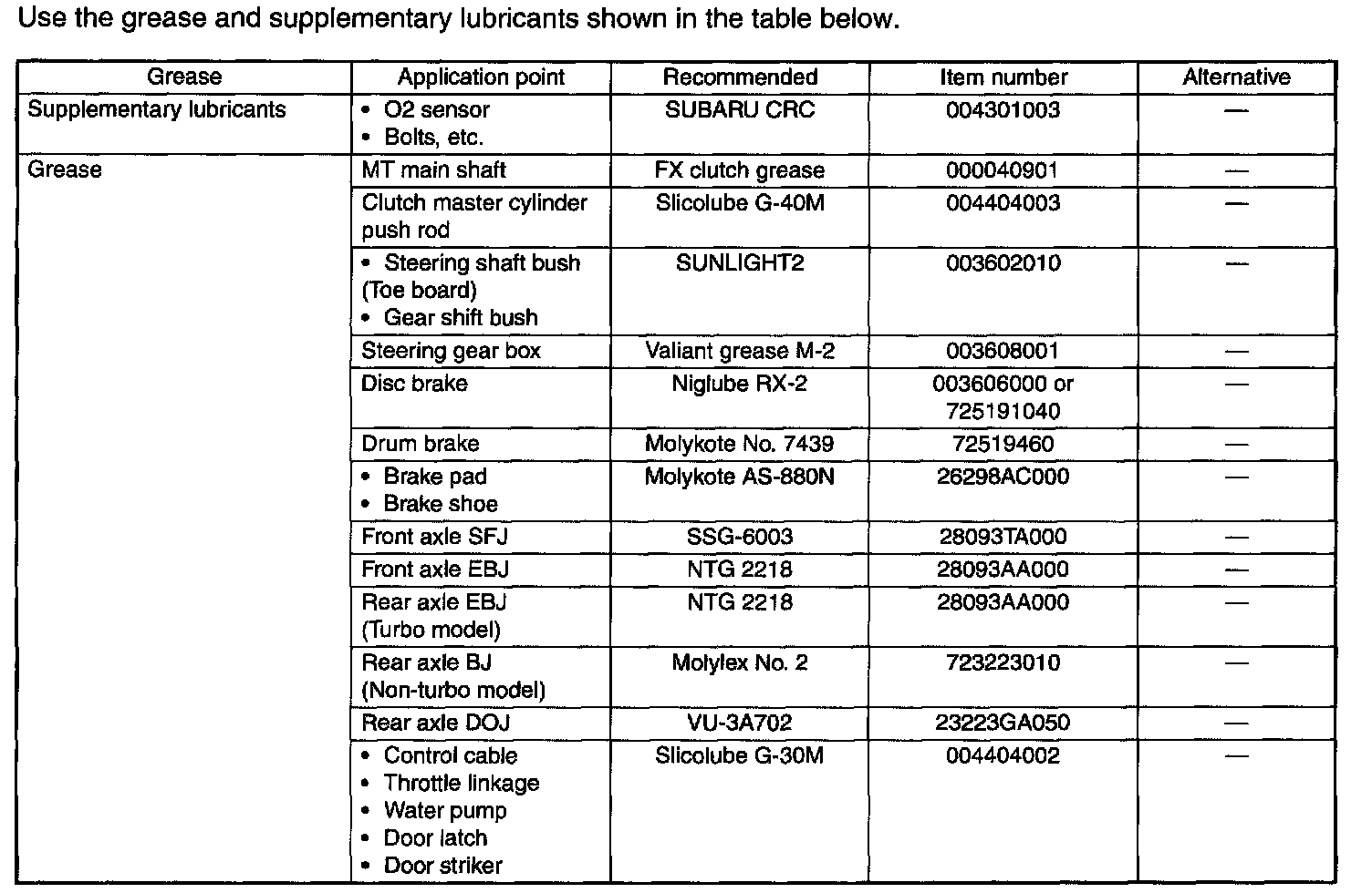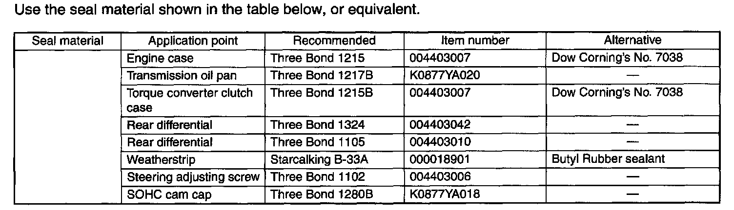 To insure the best performance, always use the specified oil, gasoline, adhesive, sealant, etc. or that of equivalent quality.