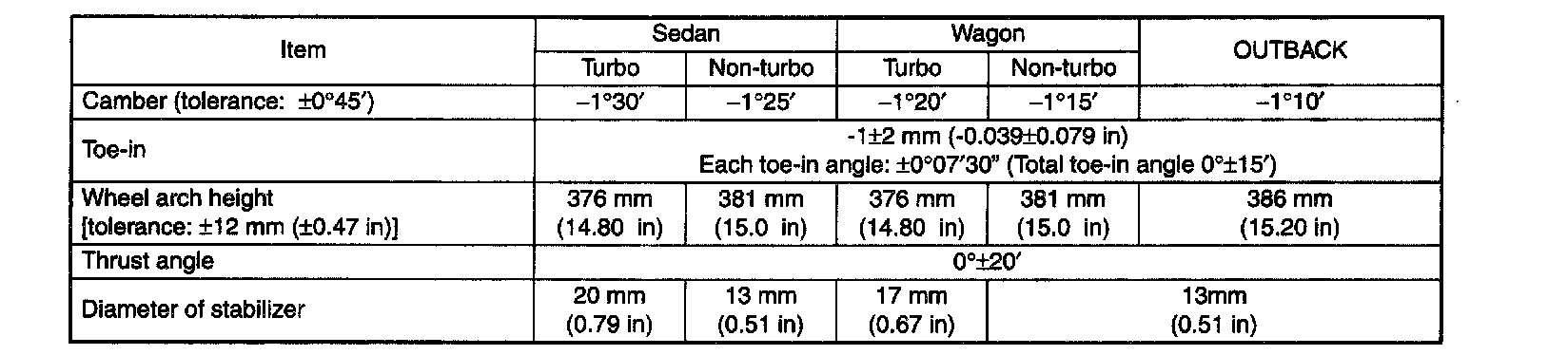 ^ The other items indicated in the specification table cannot be adjusted. If the other items exceeds specifications, check the suspension parts and connections for deformities; replace with new ones as required.