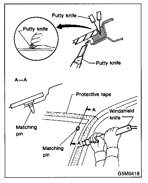 - Cutting of adhesive layer shall be started with wider gap between windshield glass and body.