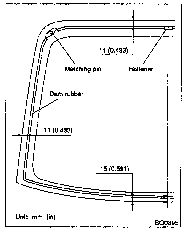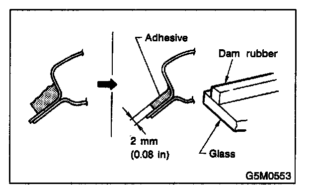 NOTE: For minimum drying time and time the vehicle must be left standing before driving after bonding, follow instructions or instruction manual from the adhesive manufacturer.