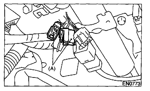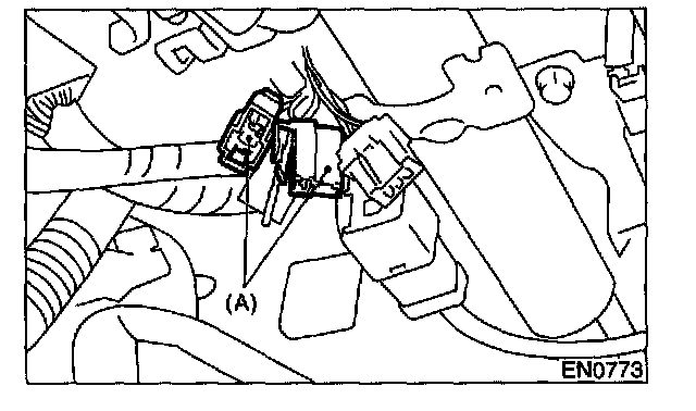 1. Connect the test mode connector (A) at the lower side of the instrument panel (on the driver's side), to the side of the center console box.