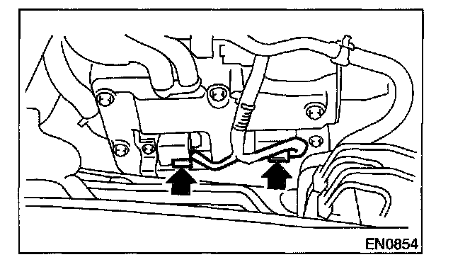 3. Disconnect the rear window glass washer hose from washer motor, then plug connection with a suitable cap.