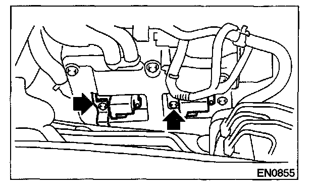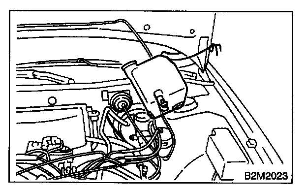 4. Remove the two bolts which hold the washer tank, then take the tank away from the working area.