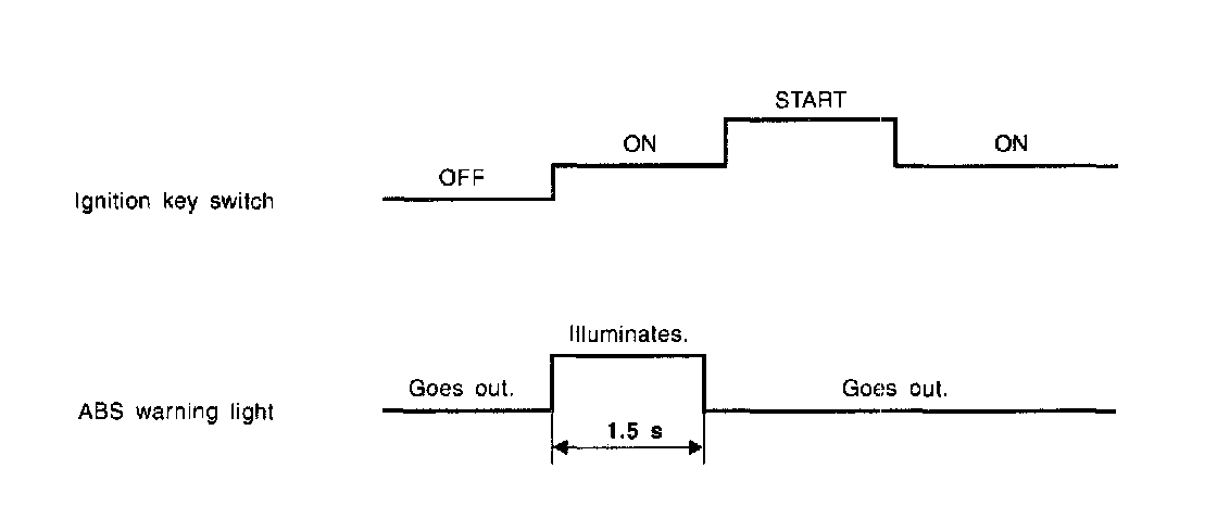 1. When the ABS warning light does not illuminate in accordance with this illumination pattern, there must be an electrical malfunction.