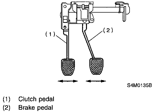INSPECTION1. Move brake and clutch pedal pads in the lateral direction with a force of approximately 10 N (1 kgf, 2 lb) to ensure pedal deflection is in specified range.