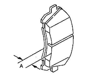 ^ A wear indicator is provided on the inner disc brake pad. If the pad wears down to such an extent that the end of the wear indicator contacts the disc rotor, a squeaking sound is produced as the wheel rotates. If this sound is heard, replace the pad.