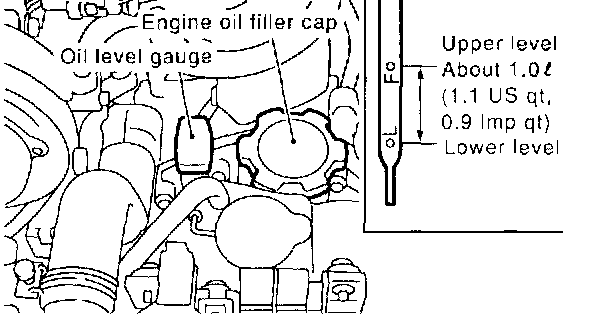 8) After engine stops, recheck the oil level. If necessary, add engine oil up to upper level on level gauge.