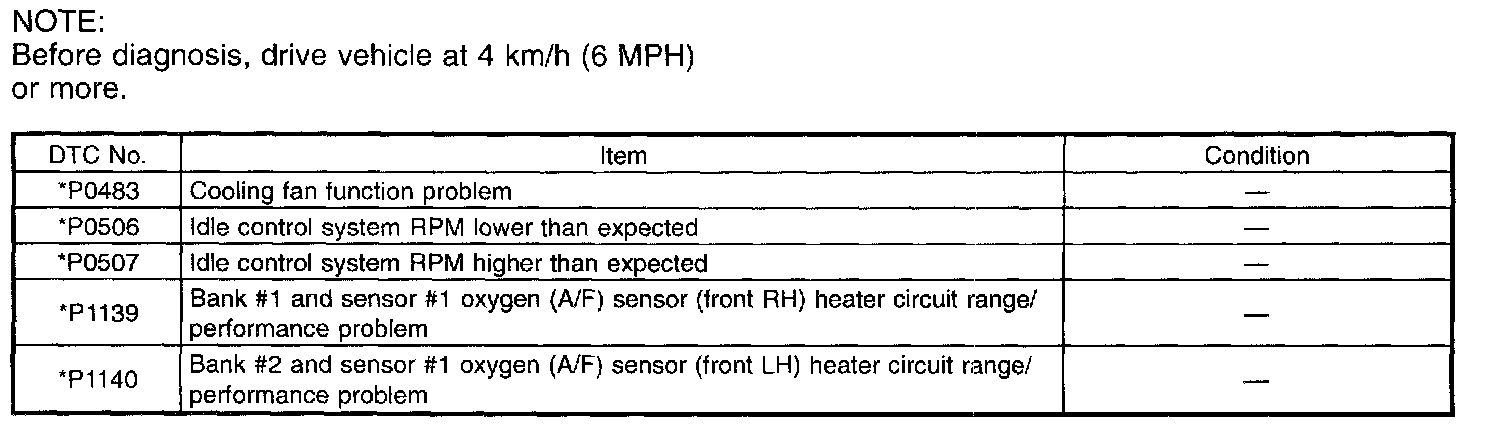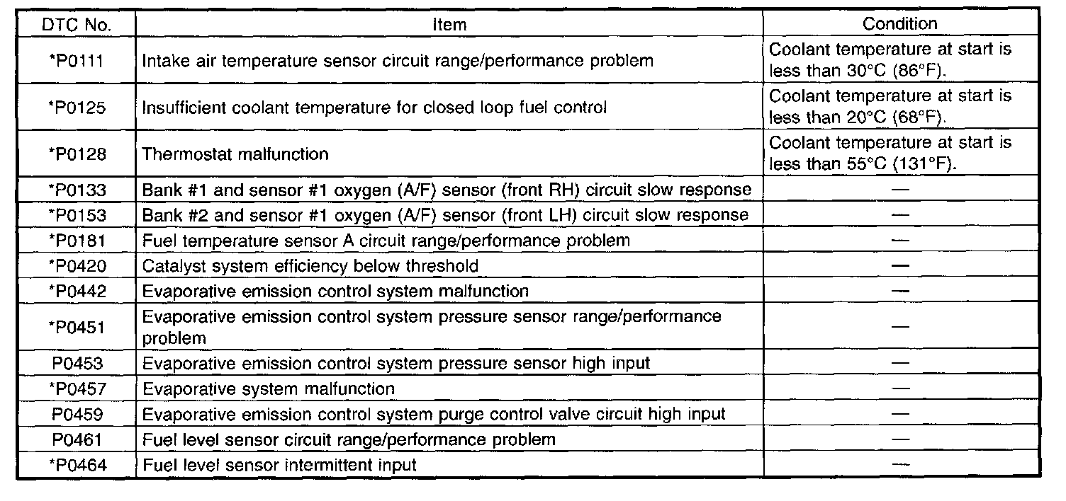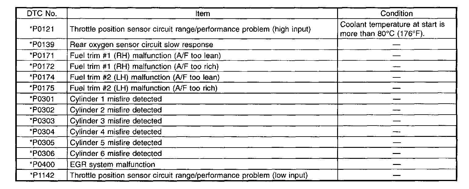 - Carry out diagnosis which is marked * on DTC twice, Then, after finishing 1st diagnosis, stop engine and do the second time at the same condition.
