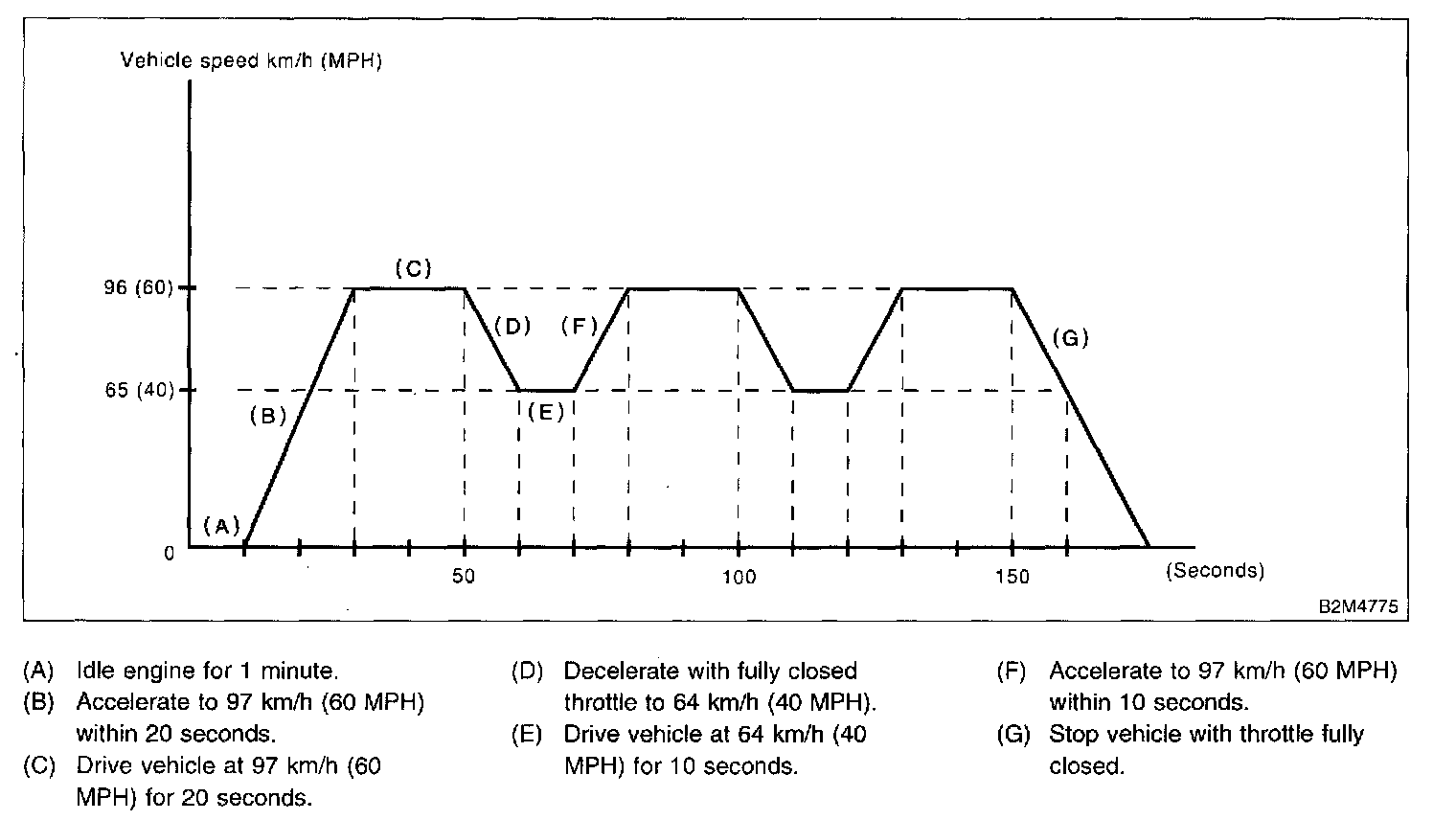 AFTER RUNNING 20 MINUTES AT 80 KM/H (50 MPH), IDLE ENGINE FOR 1 MINUTE.