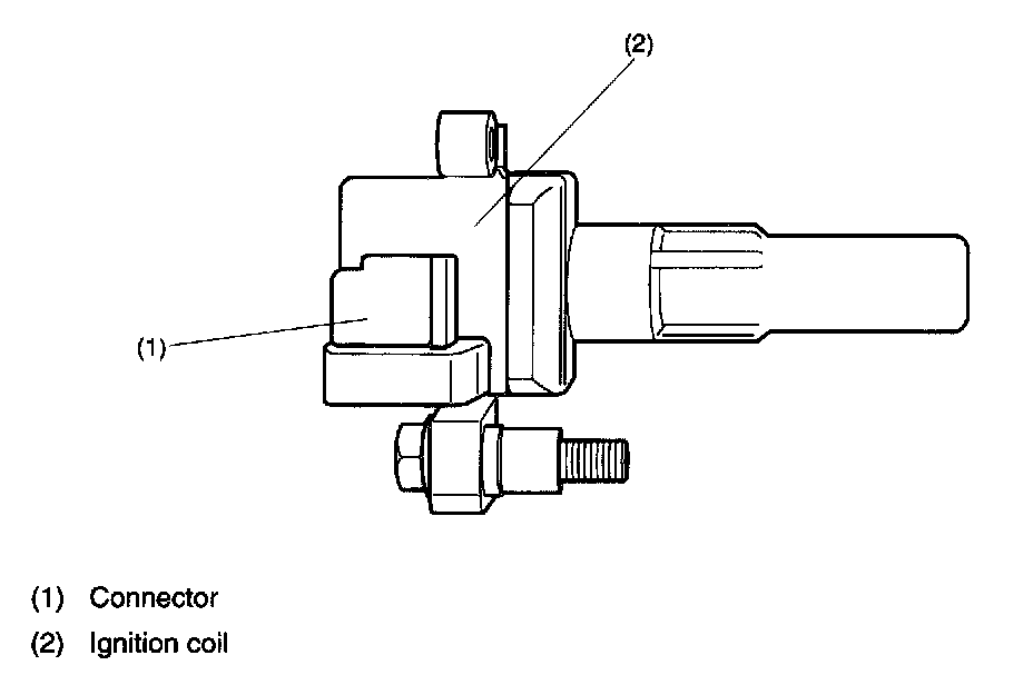 The secondary terminal of the ignition coil is in contact with the spark plug terminal nut. Since no spark plug cable is used, secondary voltage drop, leaks, or other problems that are inherent in a system using spark plug cables do not occur. The result is high performance and high reliability.