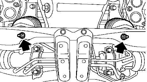 12. Support crossmember with a jack, remove nuts securing crossmember to body and gradually lower crossmember along with steering gearbox.