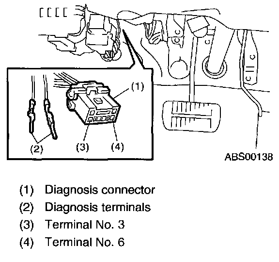 2) Connect the diagnosis terminal to terminal No. 6 of the diagnosis connector beside driver's seat.