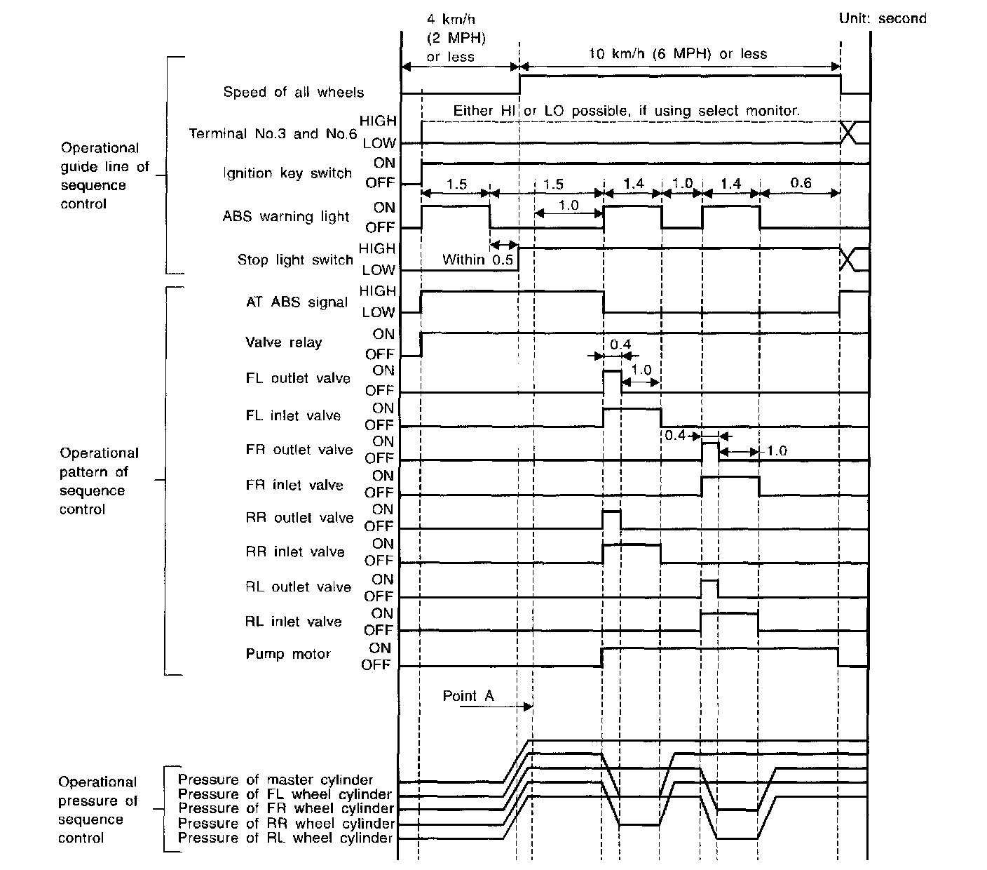 ^ In the event of any trouble, the sequence control may not be operative. In such a case, activate the sequence control, referring to "ABS SEQUENCE CONTROL WITH DIAGNOSIS CONNECTOR".