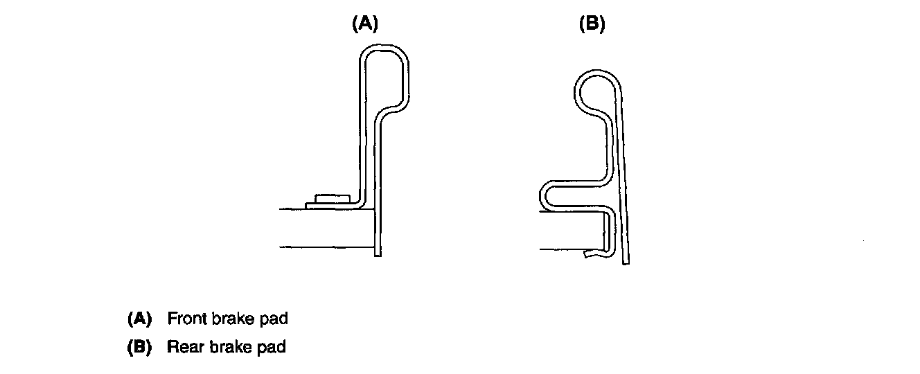 A wear indicator is provided on the inner disc brake pads. When the pad wears down to 1.5 mm (0.059 inch) the tip of the wear indicator comes into contact with the disc rotor, and makes a squeaking sound as the wheel rotates. This alerts the driver to the situation.