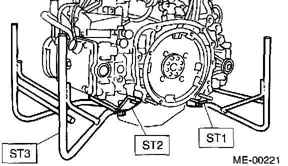 1. After removing the engine from body, secure it in the ST shown below.