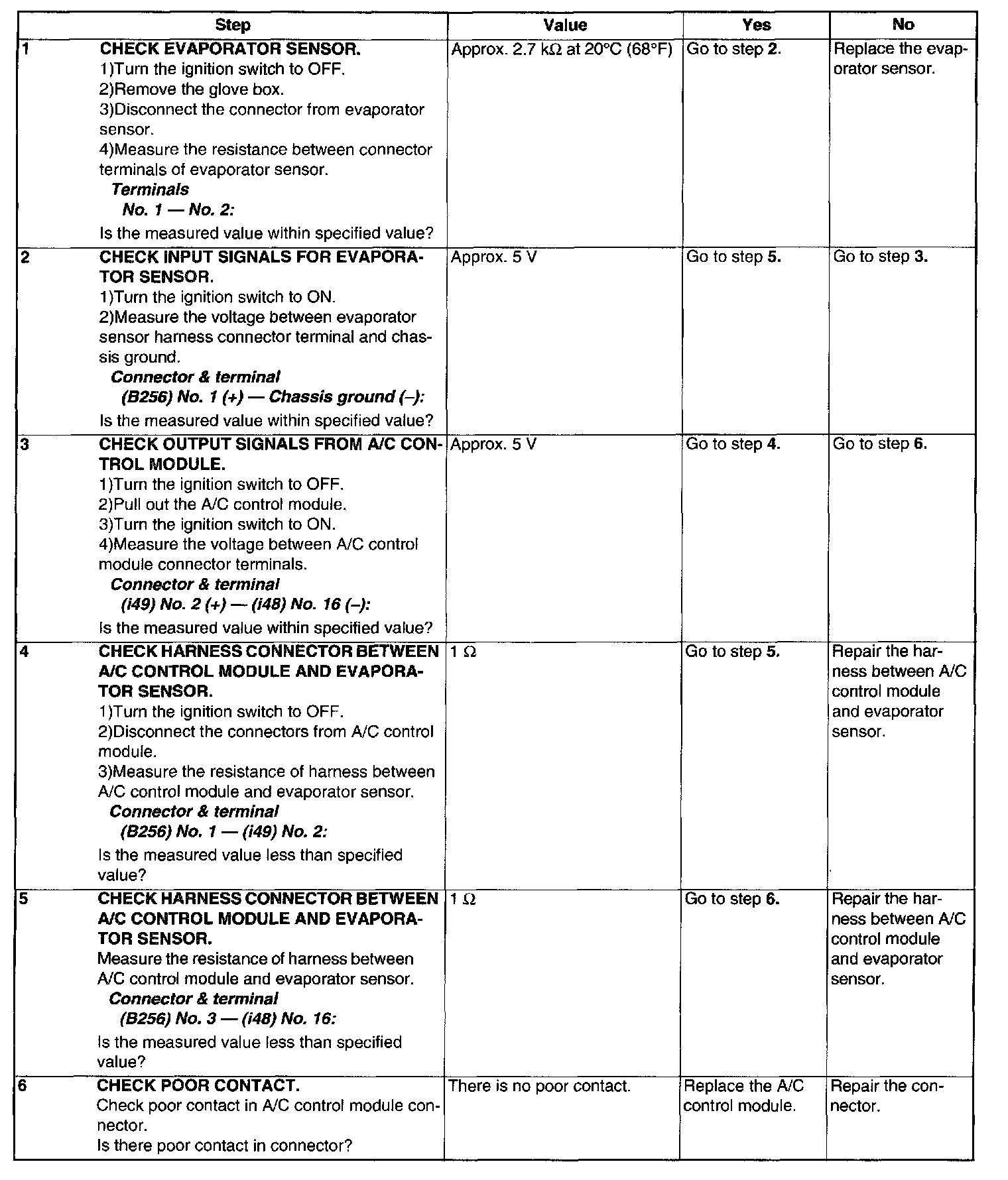 Evaporator Temperature Sensor / Switch: Testing and Inspection