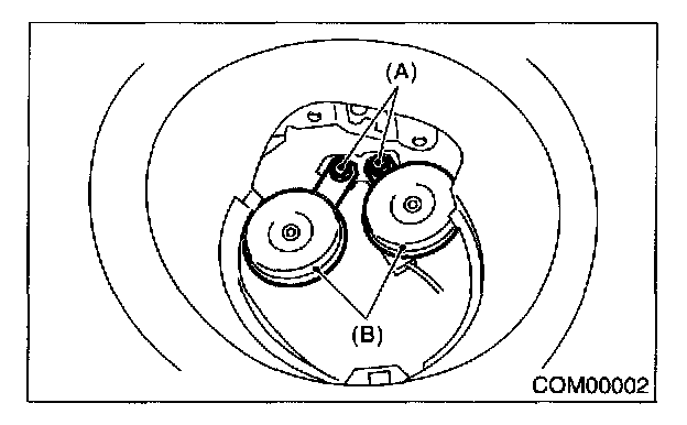 4. Disconnect the harness connector and remove the horn assembly (B).