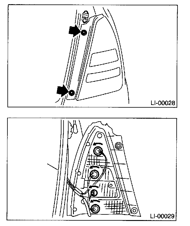 2. Remove the two bolts, and then turn the socket and disconnect cord assembly to remove rear combination light.